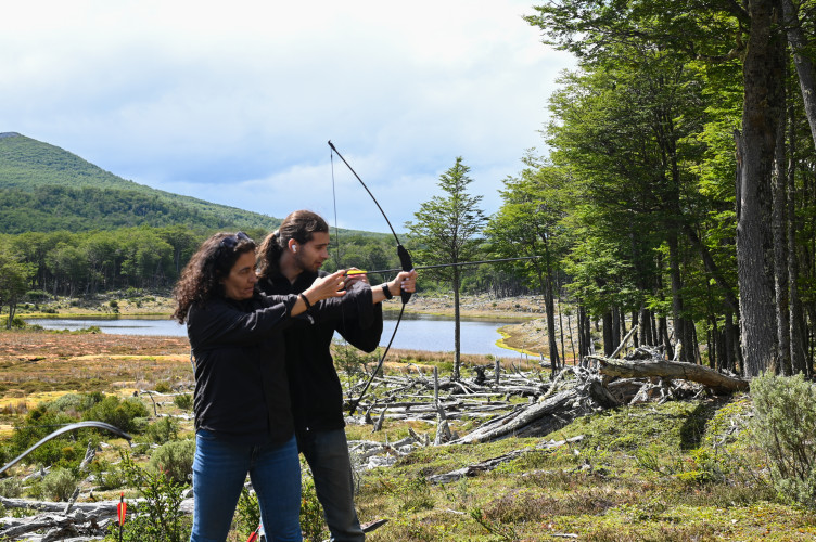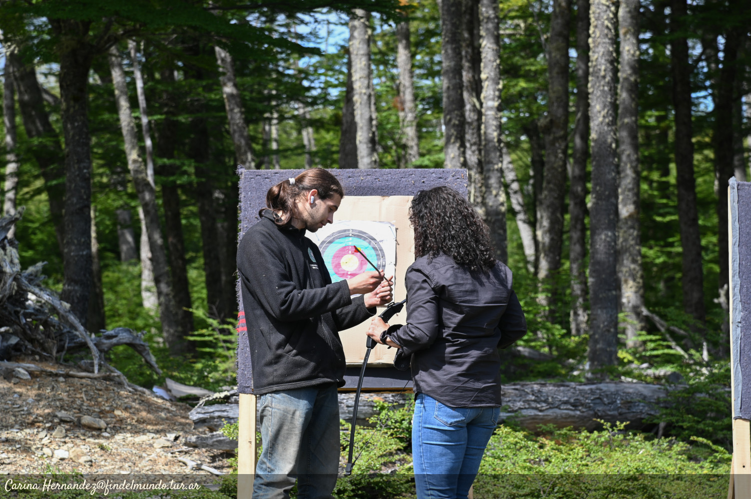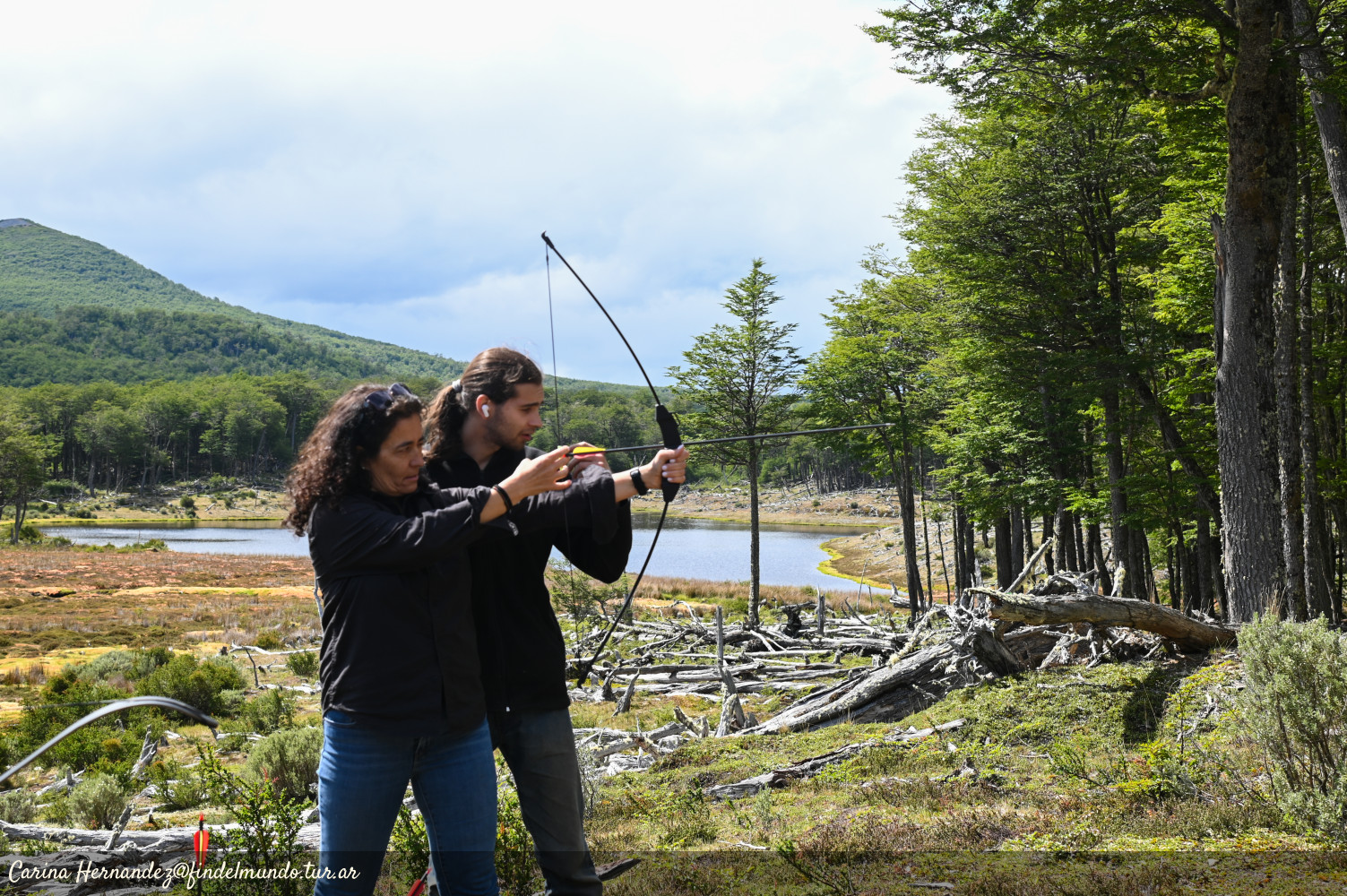 Además del tejido con juncos, se puede aprender sobre Arquería en la Comunidad Selk´nam. Haciendo una caminata de baja dificultad por un sendero que conduce hacia las cercanías de la Laguna de Turba, allí se brinda una introducción y se instruye sobre la importancia del arco y la flecha en la vida ancestral de este pueblo, tanto como herramienta de caza como símbolo de destreza y supervivencia. Luego de esta charla se procede a practicar el tiro con arco, con la guía de expertos de la comunidad.