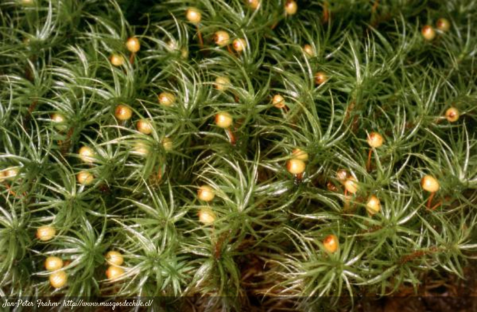 Bartramia mossmaniana se puede identificar a campo porque todas sus “hojas” están arqueadas en una dirección.