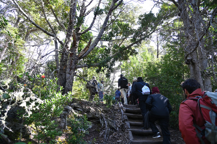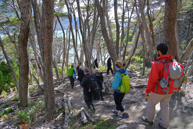 Este sendero posee una dificultad media. El recorrido comienza en Bahía Ensenada, donde se ubica el cartel informativo, y finaliza en las cercanías del Centro de Visitantes Alakush.La extensión total del circuito es de 8 kilómetros (sólo ida).