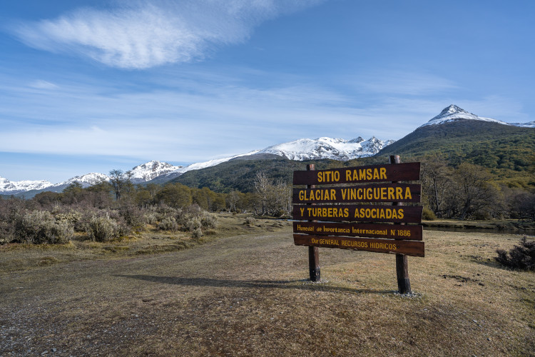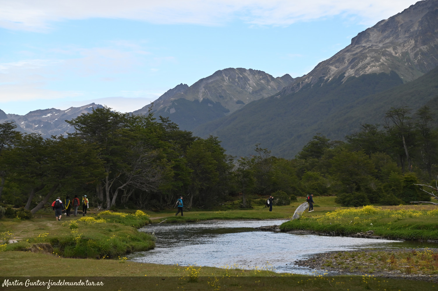 Este sendero transita la parte baja del valle de Andorra, y posee una dificultad baja. El recorrido comienza en una tranquera ubicada al fondo del Valle de Andorra, a unos 8 kilómetros del centro de Ushuaia. Desde la tranquera, comenzamos a recorrer el Sitio Ramsar, que cuenta con más de 11 tipos de humedales. A unos 500 metros cruzamos la primer turbera, que se encuentra degradada por una actividad de explotación realizada hace años. En esta parte del sendero podemos observar turberas de Sphagnum, turberas arboladas y terrenos pantanosos, por lo cual es necesario utilizar calzado y ropa impermeable para transitarlo. Cuando se llega hasta el Arroyo Grande, debemos continuar la caminata por su ribera sin cruzar el puente. A unos 200 metros de éste, podemos observar la turbera elevada del Valle. Este tipo de turberas poseen una biodiversidad única, ya que contienen una mezcla entre musgos, plantas vasculares, hongos y líquenes.