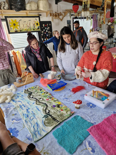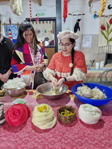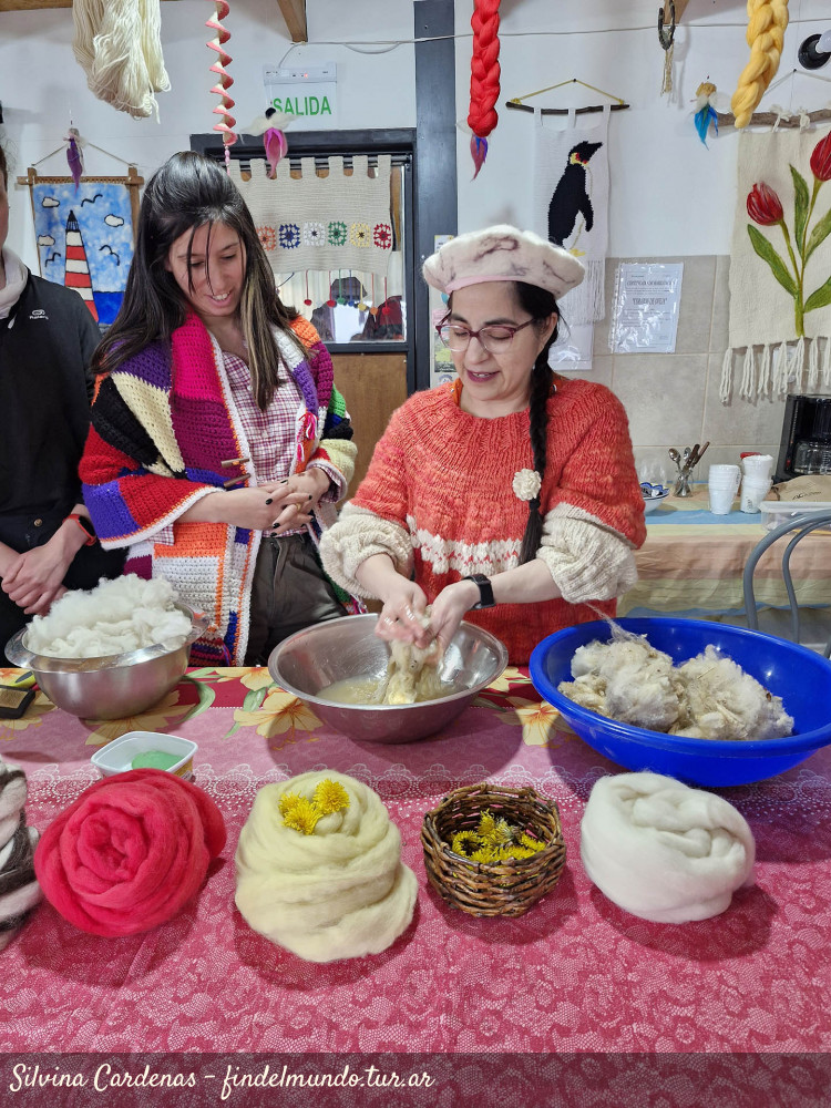 Por último, El Arte de la Lana Fueguina introduce al visitante en la historia de la la lana de oveja en la Patagonia, con una explicación paso a paso sobre el proceso de esquila y obtención del vellón hasta lavado, cardado, hilado y teñido con tintes naturales. Esta experiencia ofrece dos modalidades, un taller de hilado en rueca, o la técnica de fieltro agujado.